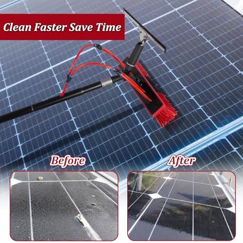 2. Características destacadas de Kit de cepillo de limpieza de paneles solares, poste telescópico de 3 a 12 m, cabezal de cepillo de 55 cm, manguera de agua, herramienta de limpieza de techo y piscina para ventanas al aire libre