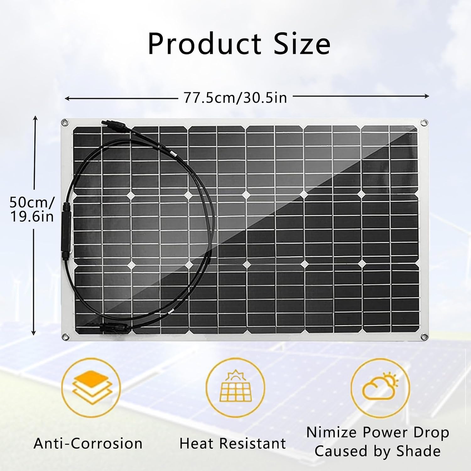 2. Características destacadas de Kit De Paneles Solares, De Paneles Solares Flexibles Sin Conexión A Red con Cables Conectores FV con Pinza Cocodrilo, para Autocaravana 2×150W