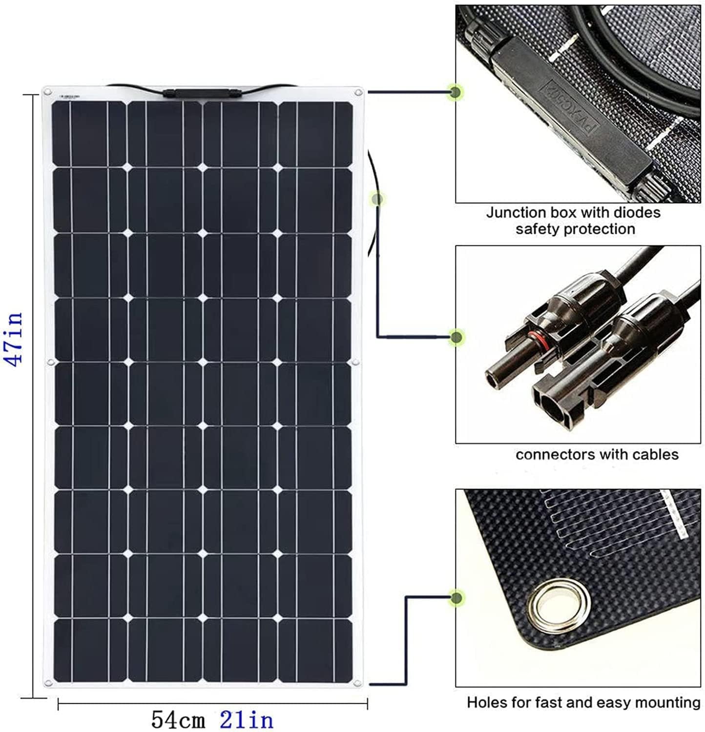 2. Características destacadas de Kit de módulo de panel solar portátil de 1200 W, 12 V-24 V, 4 paneles solares flexibles de 300 W con controlador 40 A, cargador de batería solar flexible monocristalino