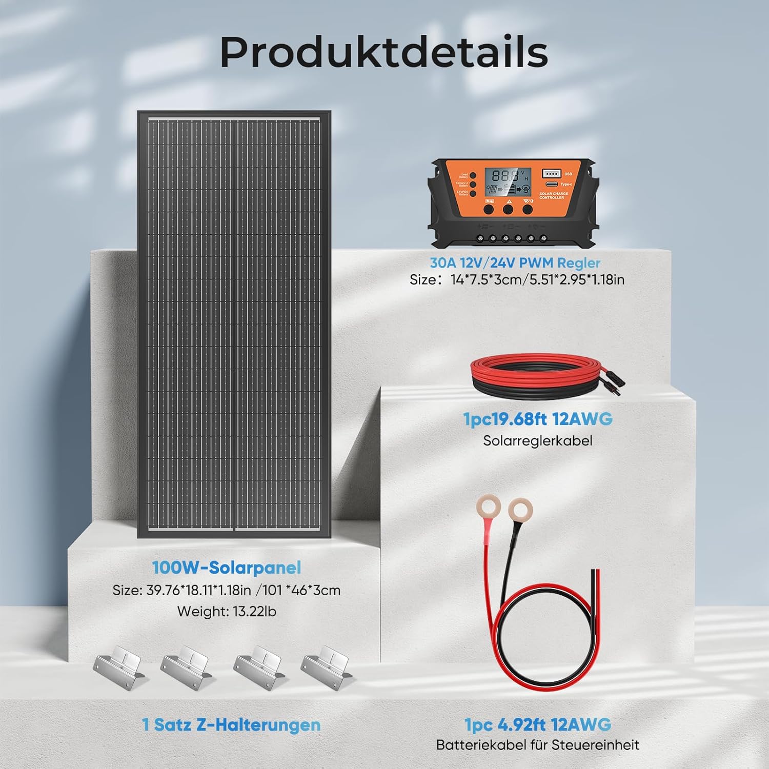 Incluye regulador de carga MPPT de 30 A Requiere cierta experiencia para la instalación