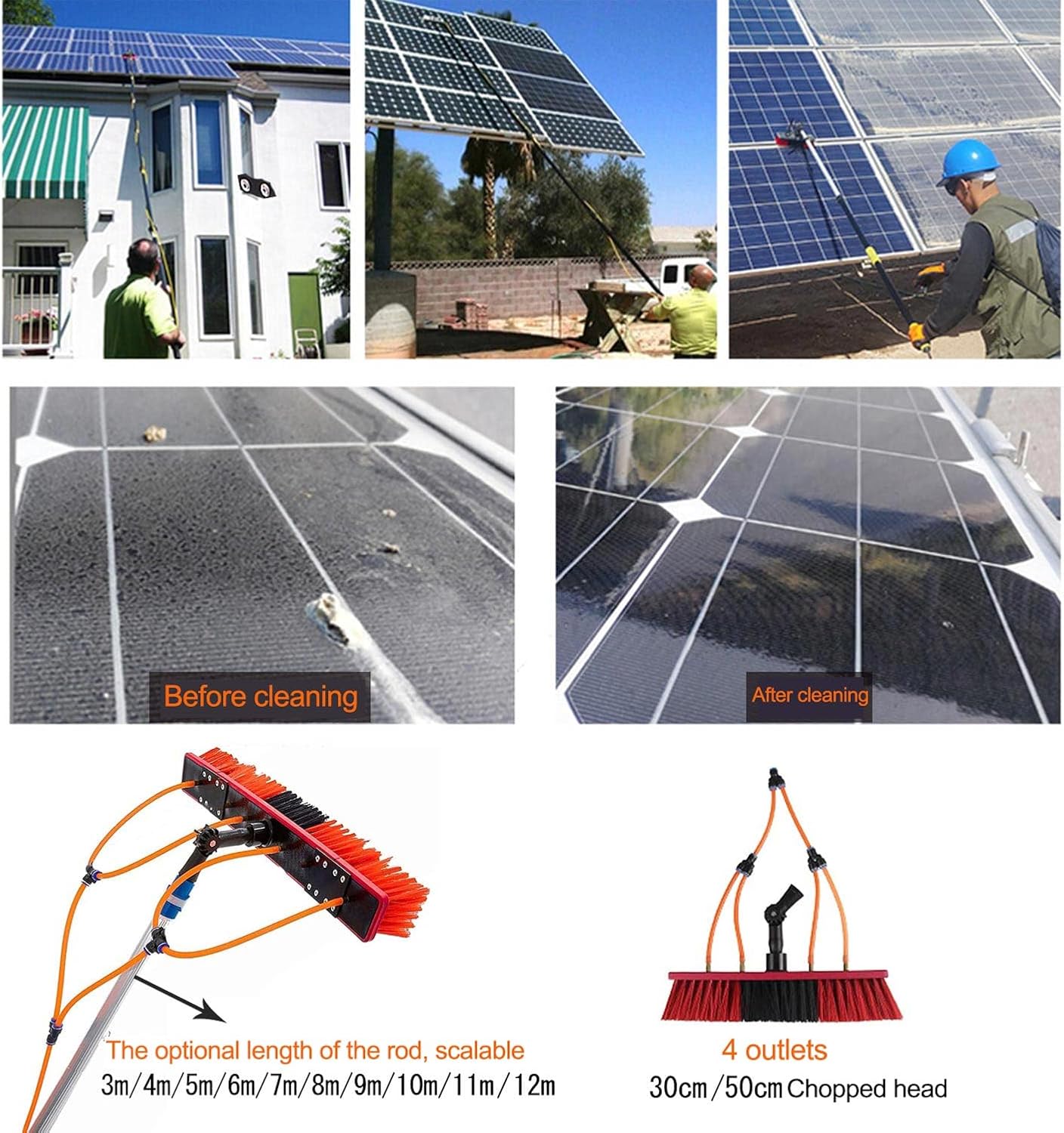 5. Pros y contras de Limpiador de ventanas telescópico de 4 m para paneles solares, cepillo extensible de alimentación de agua con cerdas de polipropileno suave, cabezal giratorio de 180° y divisor en Y para una limpieza