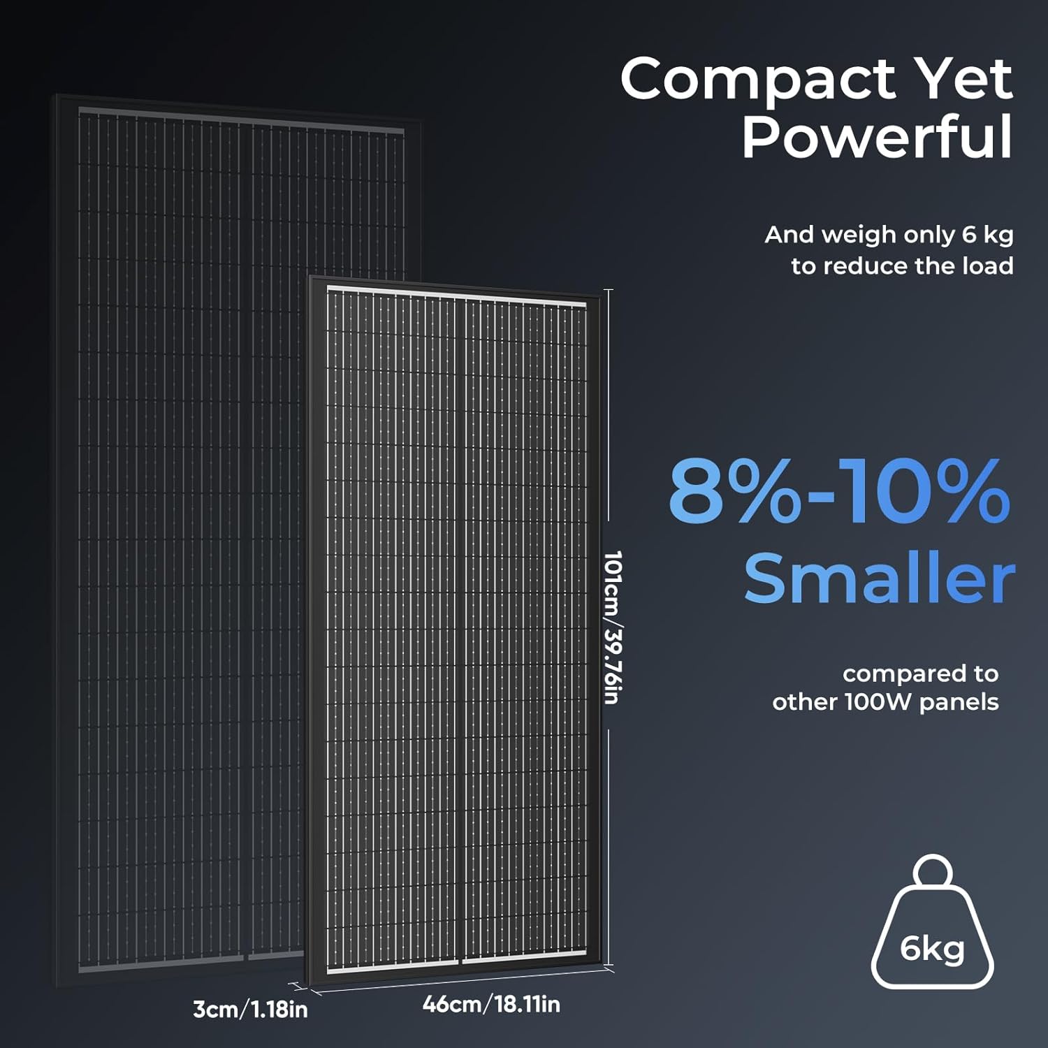 100W Monocrystalline Solar Panel, Ideal para Carga de Baterías de 12V y 24V, Barcos, Caravanas, RV y Aplicaciones Fuera de la Red