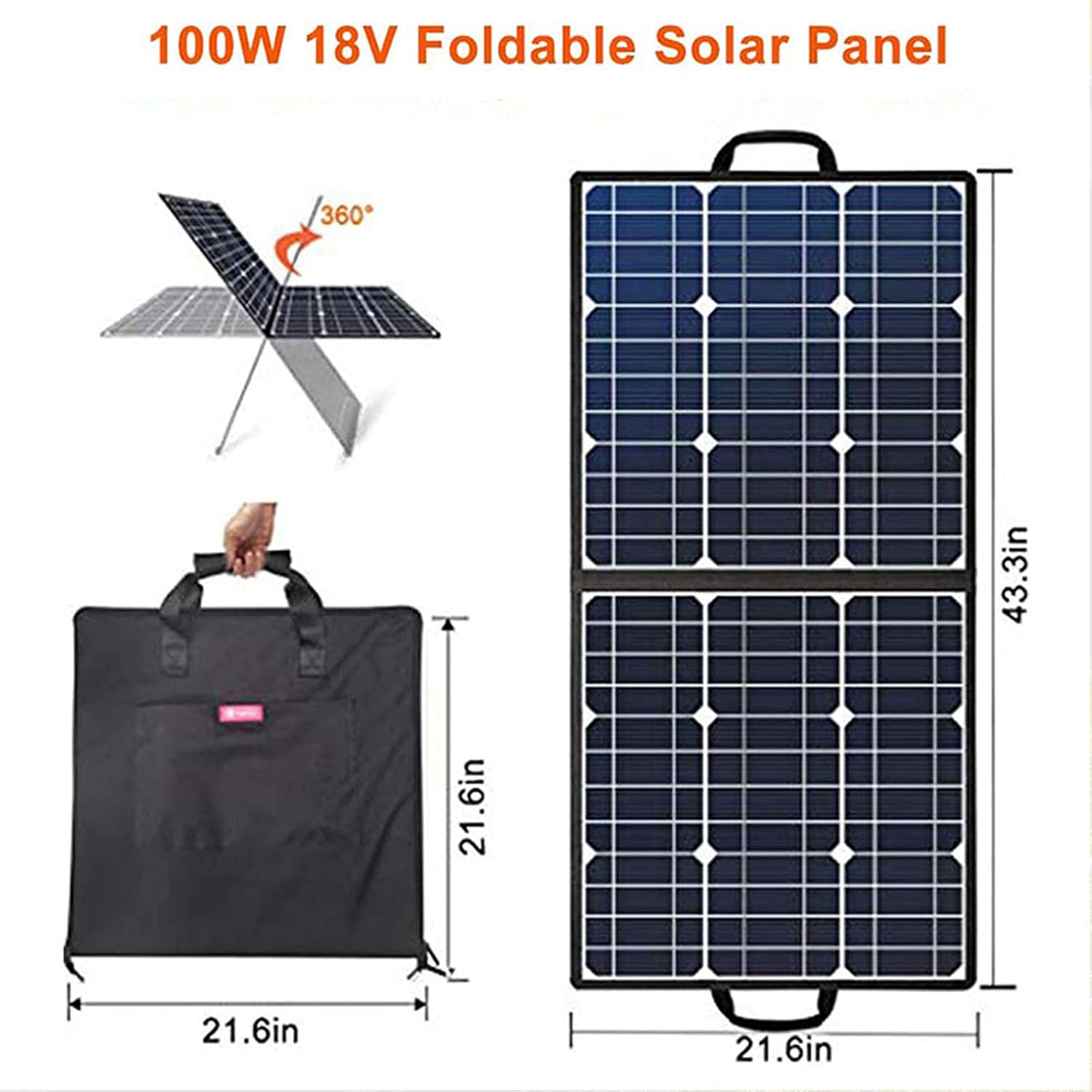 100W 18V Panel Solar portátil 5V USB Flashfish Células solares Plegables Cargador de batería Plegable Fuente de alimentación al Aire Libre Camping Jardín, 100W