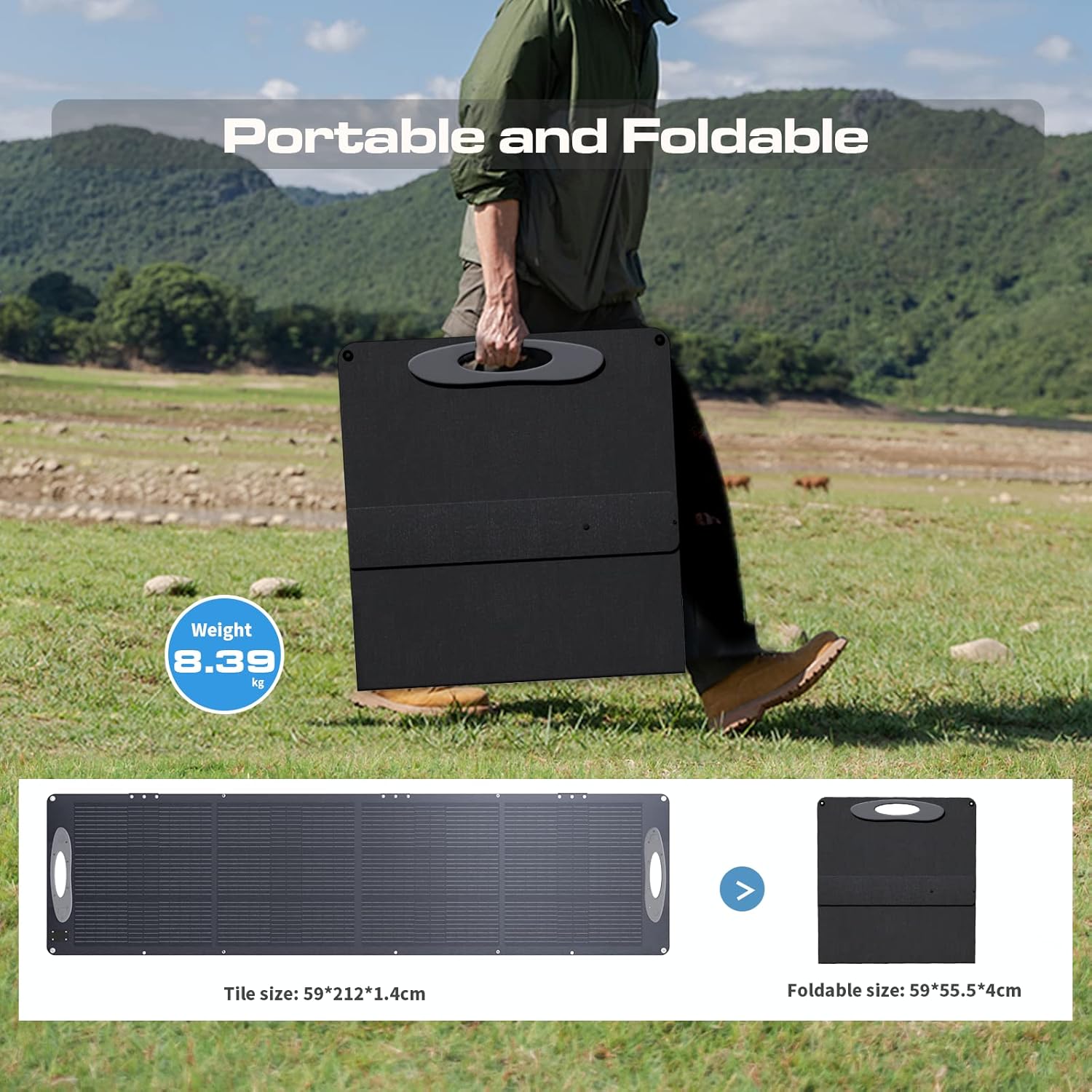 - Fácil Instalación: Sin complicadas instrucciones, este panel solar se monta y desmonta en segundos, lo que lo hace práctico para cualquier usuario.