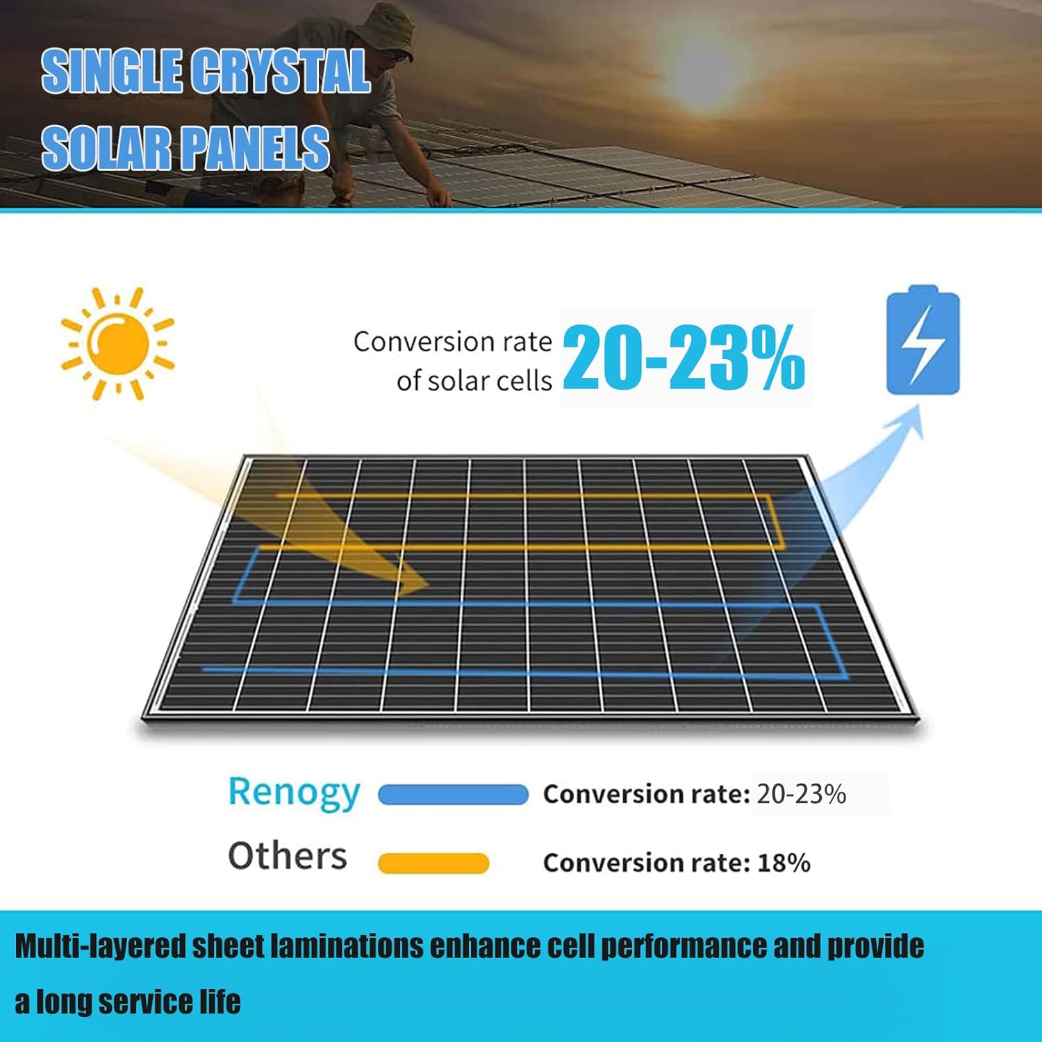 - Rendimiento: Eficiencia del panel solar de hasta un 22%, asegurando la máxima conversión de luz solar en energía.