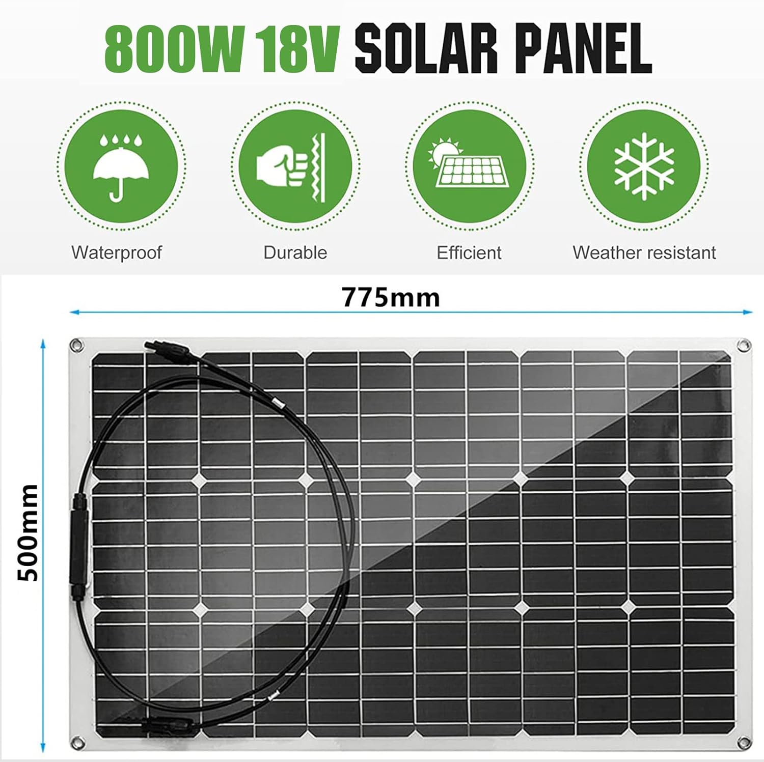 Paneles solares portátiles de 800 W: Cargador de batería Solar de 18 V, Kit de Panel Solar Impermeable IP65 para Camping y Senderismo, Sistema Completo de Carga Solar