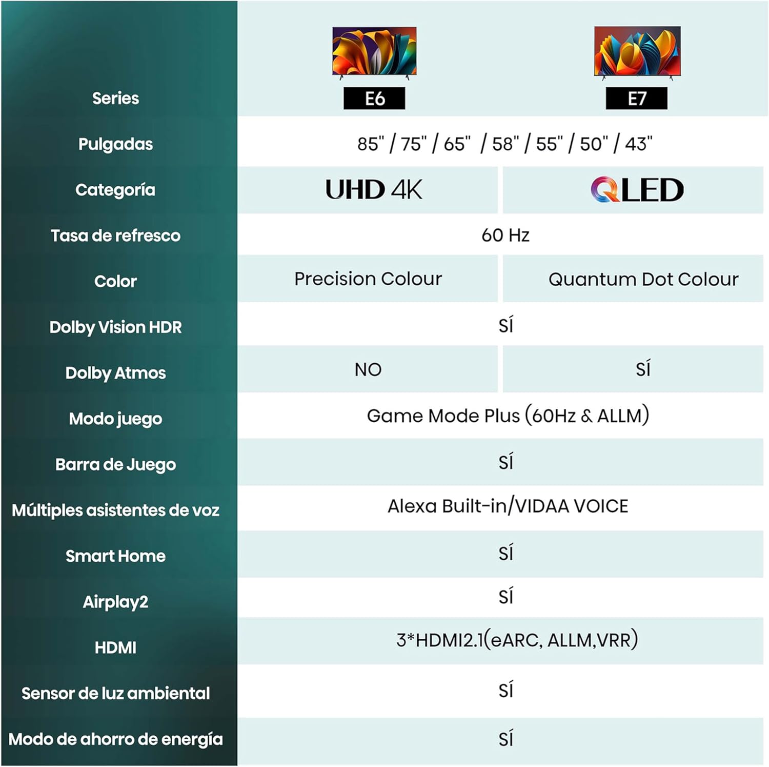 A continuación, se presentan las especificaciones más relevantes del Hisense 43A6N, enfocándose en su rendimiento y compatibilidad:
