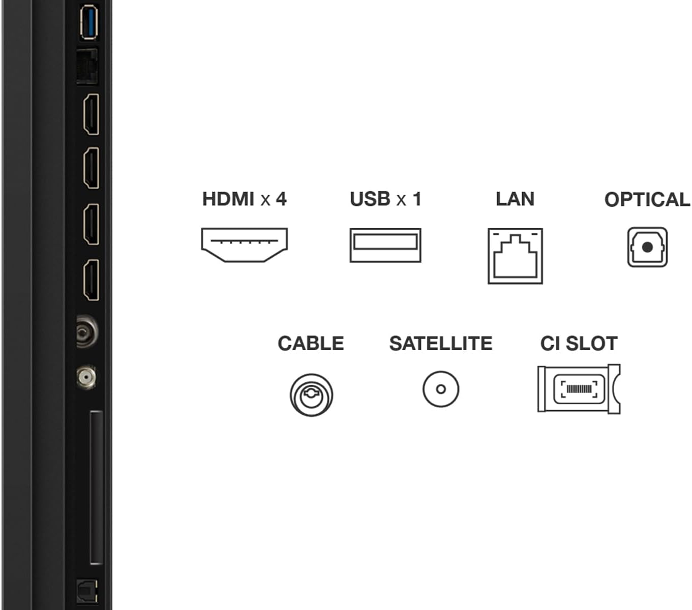 El televisor cuenta con múltiples puertos HDMI y conectividad Wi-Fi y Bluetooth, lo que facilita la conexión con otros dispositivos. La compatibilidad con Google Assistant permite controla el TV mediante comandos de voz.