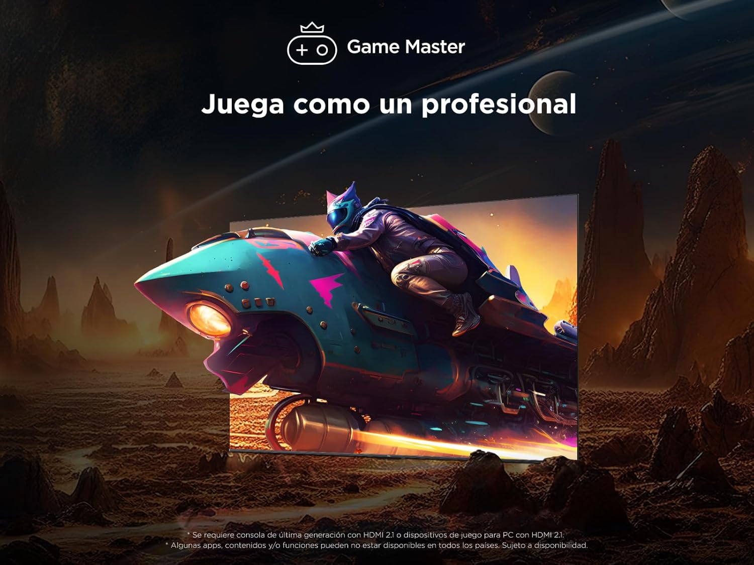 Con el modo Motion Clarity Pro y FreeSync, este televisor es ideal para los amantes de los videojuegos, proporcionando una experiencia de juego más fluida y menos interrupciones.