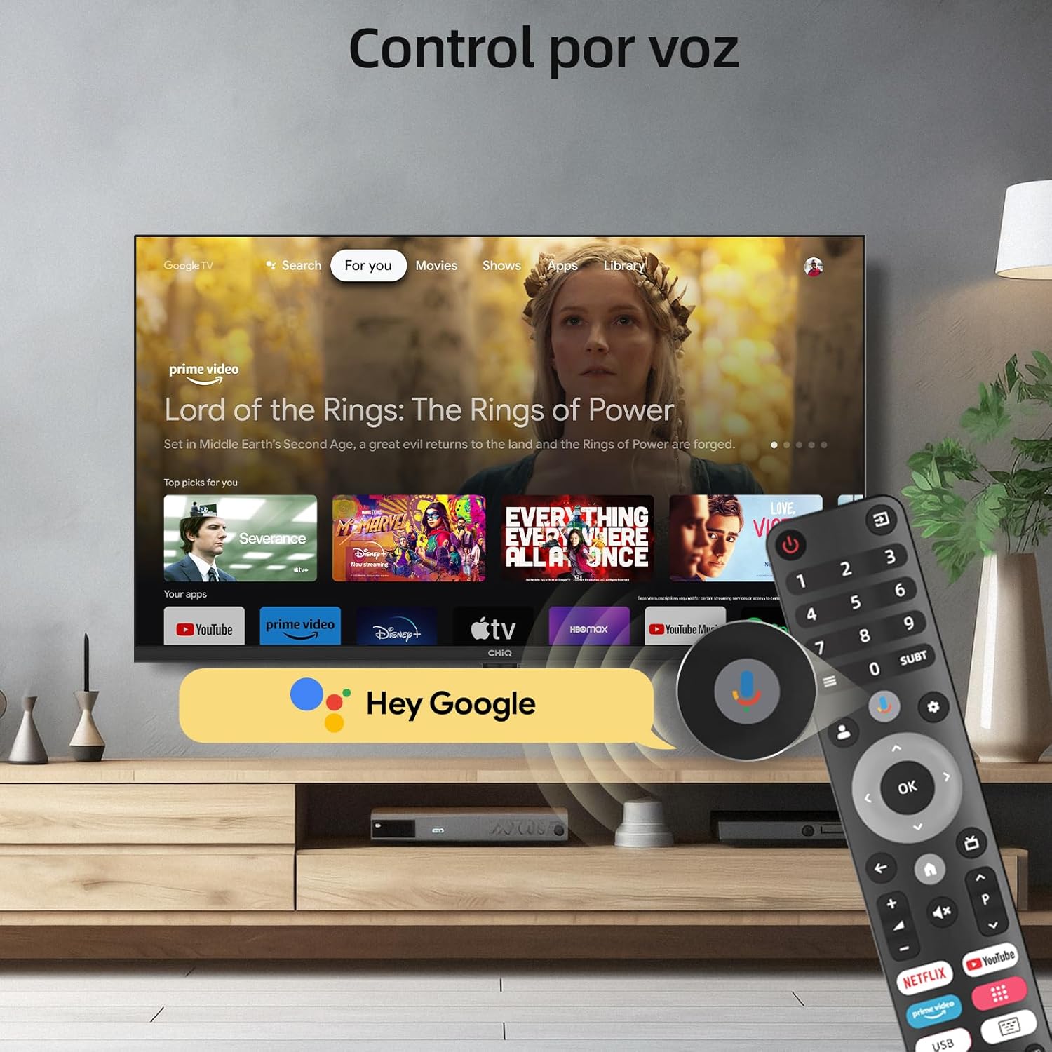 - Asistente de Google integrado: Controla tu televisor y otros dispositivos inteligentes de casa simplemente usando tu voz.