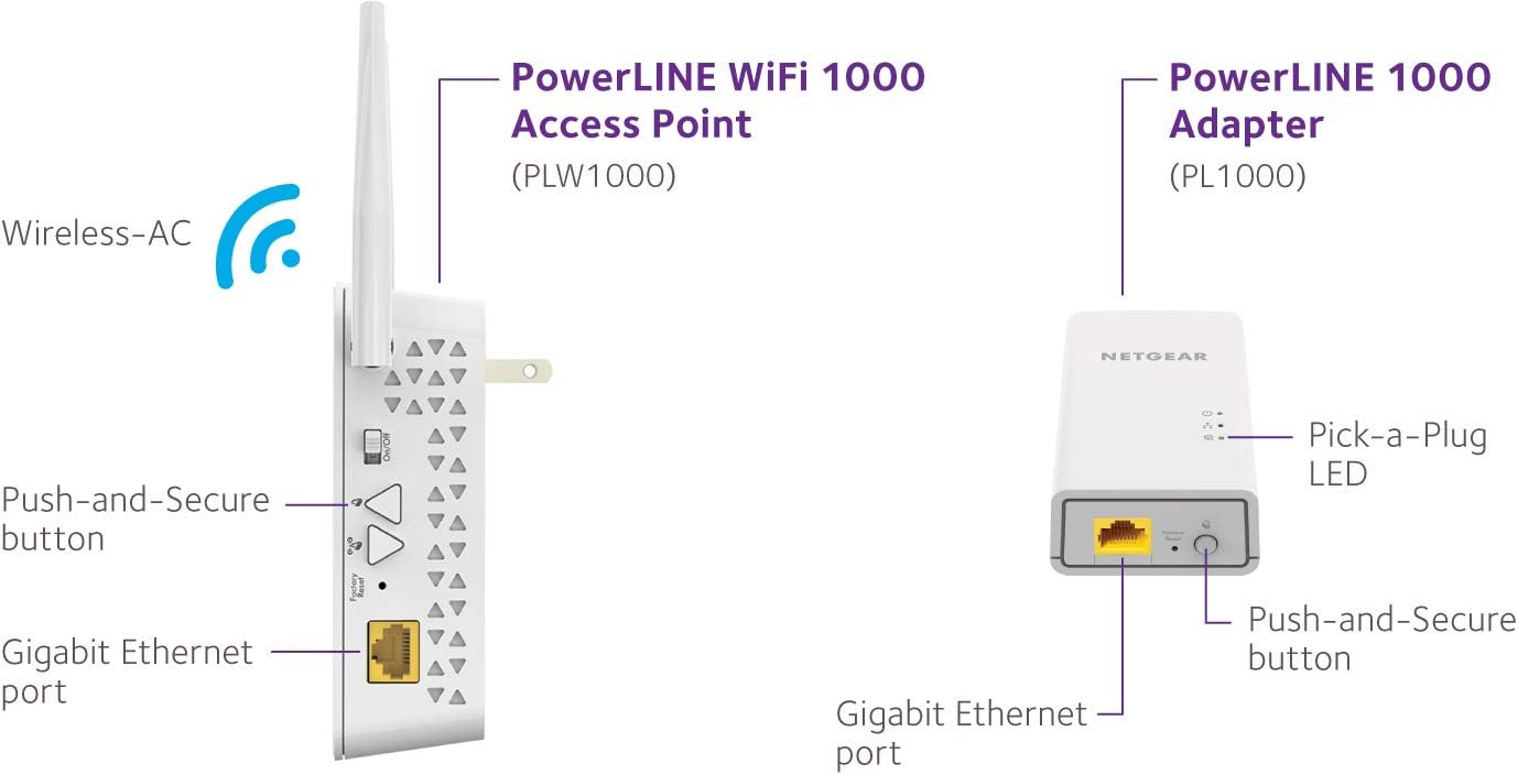 NETGEAR PLPW1000: CPL WiFi 1000 Mbps con 1 Puerto Ethernet, Ideal para tu Hogar